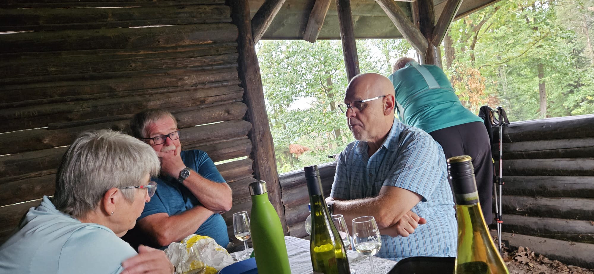 Beim Auspacken der Rucksäcke kam so manches "Schmankerl" zum Vorschein. Versteht sich, dass dazu ein gutes "Schlückchen" nicht fehlen durfte. So einige hatten ein Fläschchen Wein im Gepäck, und bei den verschiedensten Sorten wurde ruckzuck eine kleine Weinprobe daraus. Zum Wandern braucht man ja schließlich Kraft.
